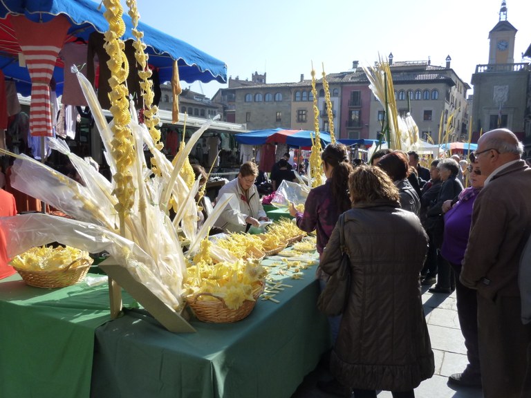 Mercat de palmes i palmons dissabte 28 al matí a l'entrada de la plaça Major / carrer Verdaguer