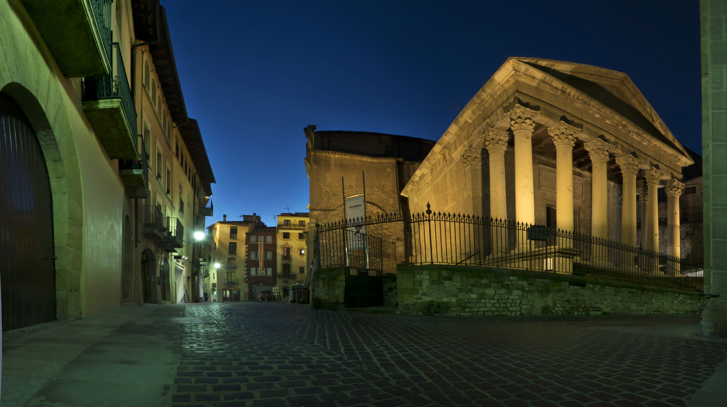 Desconocido durante siglos porque estaba envuelto y formaba parte del castillo medieval de los Montcada, erigido a finales del siglo XI. Las paredes del actual Templo formaban el patio interior del castillo y se recuperaron a partir del 1882 cuando se derribó el antiguo edificio que había acogido las funciones de residencia del veguer, sede de la Cúria Reial, granero de la ciudad y prisión